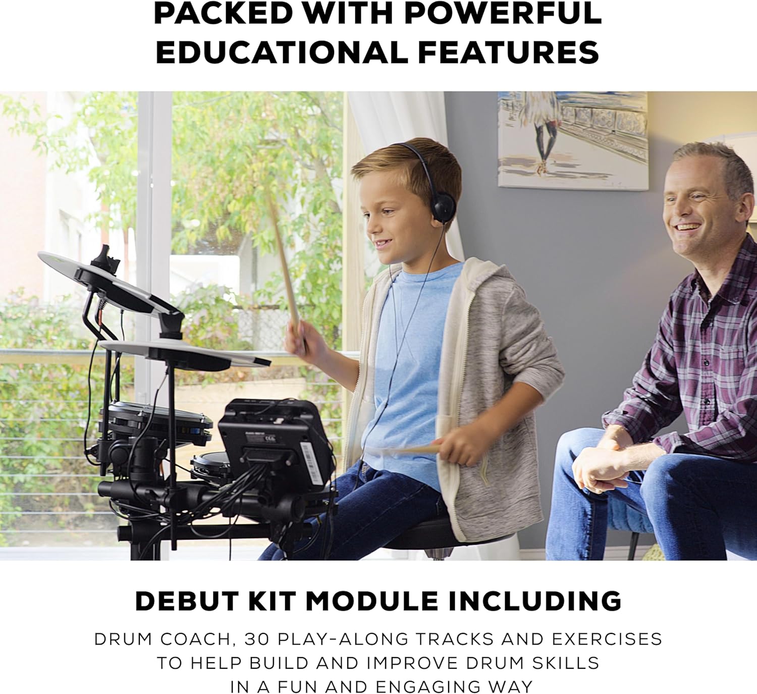 - This Mini Drum Kit is packed with Powerful Education Features – Debut Drum Kit Module with drum coach, 30 play-along tracks and fun exercises to help build and improve drum skills