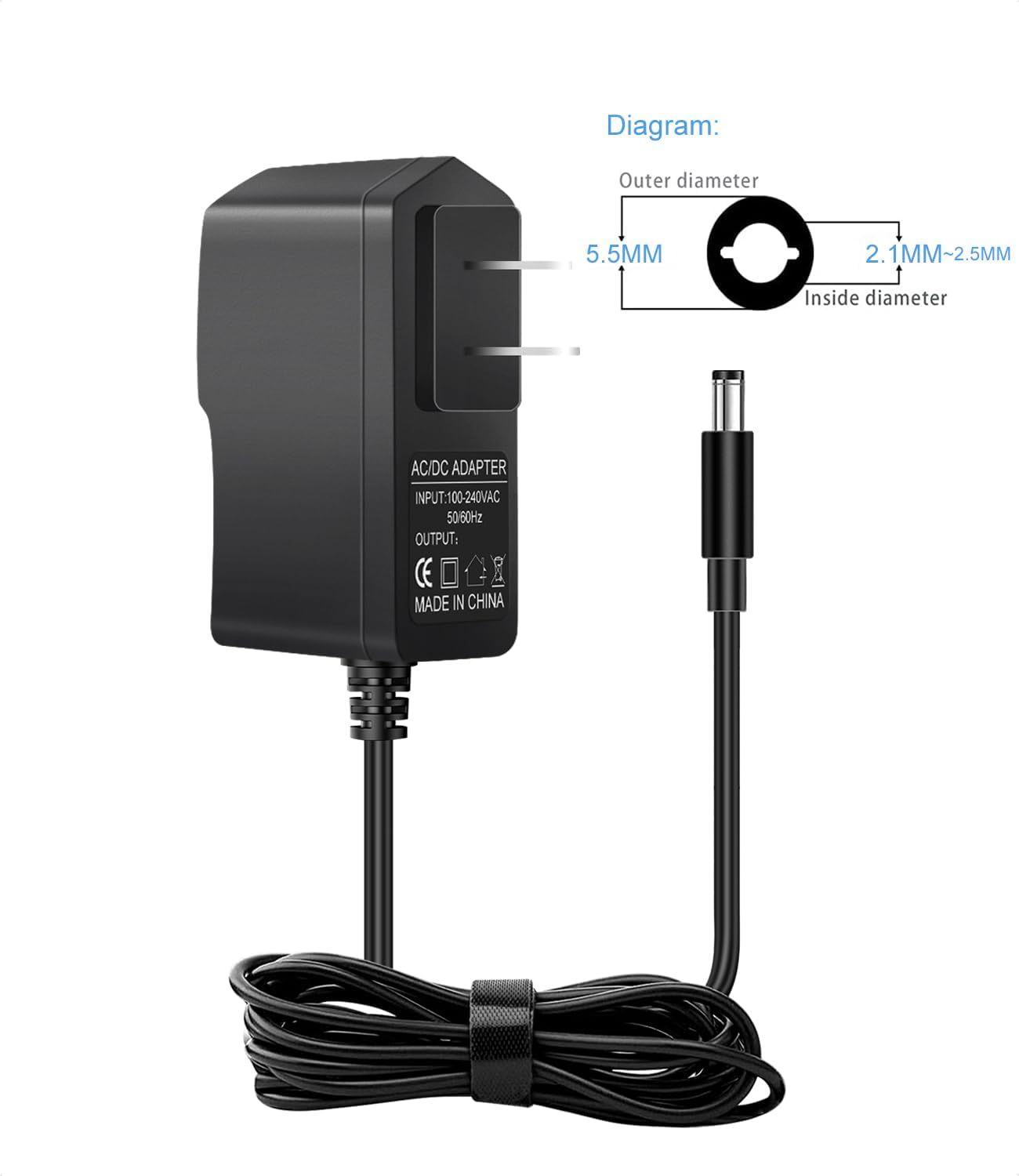 • Power Specs: lnput voltage: 100-240V 50/60Hz, output voltage: 9.5V 1A(1000mA) DC plug: Center positive, Cable length: 6 Feet. Cable with anti-interference magnetic ring, Low Noise More Stability Reliability, protection against short-circuiting, overvoltage, overcurrent and internal overheating.