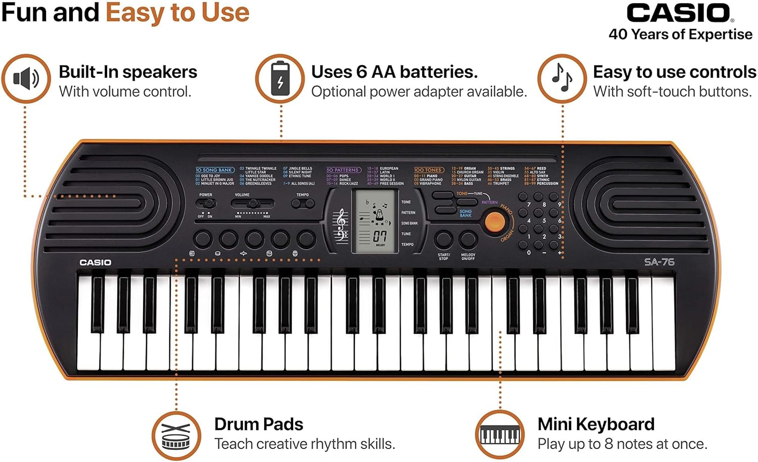Casio SA-76 Mini Keyboard 44 Keys Black/Orange