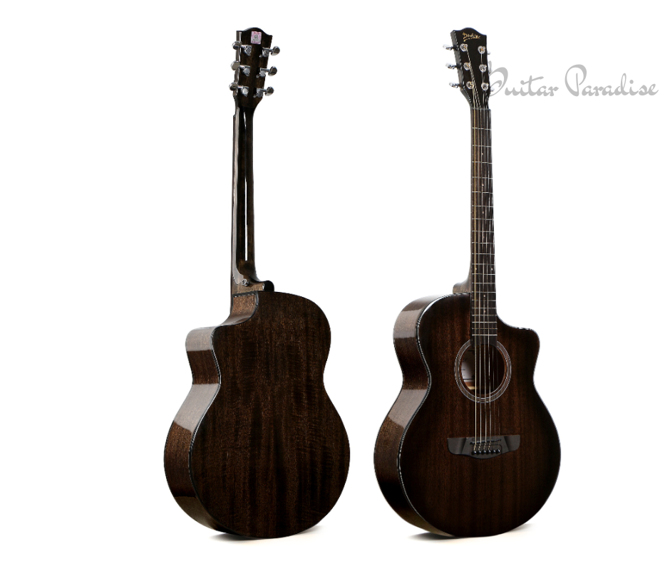 A high-gloss bright black surface finish enhances the instrument’s visual appeal while protecting the wood from wear. The guitar also features precision enclosed tuning machines, ensuring stable tuning and dependable performance.