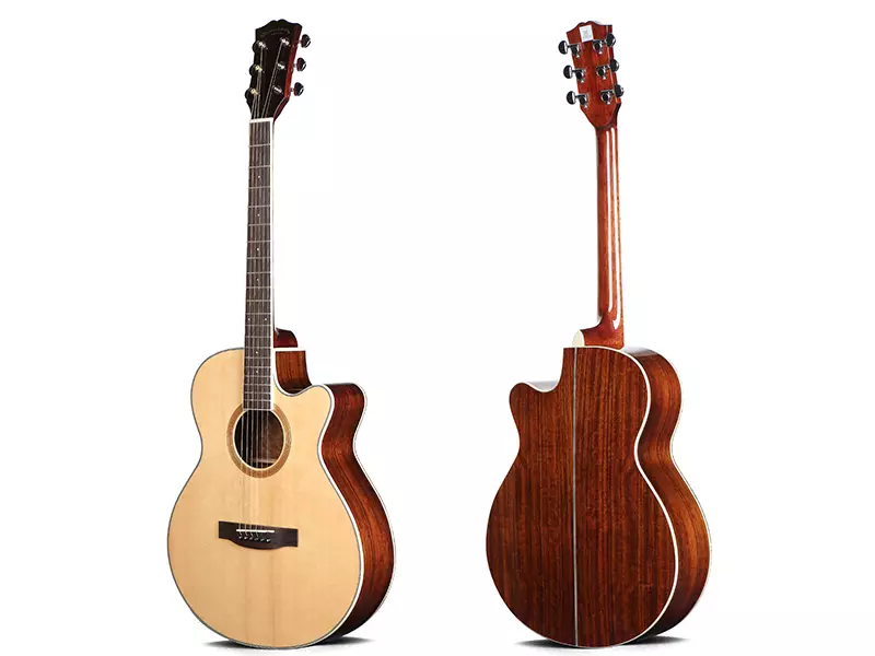 The mahogany neck ensures strong stability and comfortable grasp, while the rosewood fretboard adds smooth playability and tonal richness. With its ABS + 5-line binding and high-gloss finish, this guitar looks as good as it sounds—offering protection and aesthetic appeal. Die-cast tuning machines give reliable tuning stability for performance or practice.