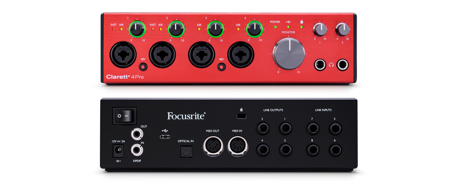 - Four professional quality Clarett⁺ preamps Hear every nuance and capture clear and powerful audio with preamps that bring masses of headroom, low distortion and ultra-low noise