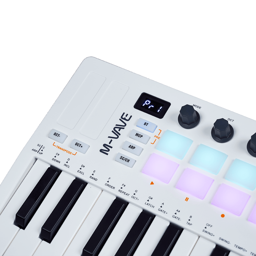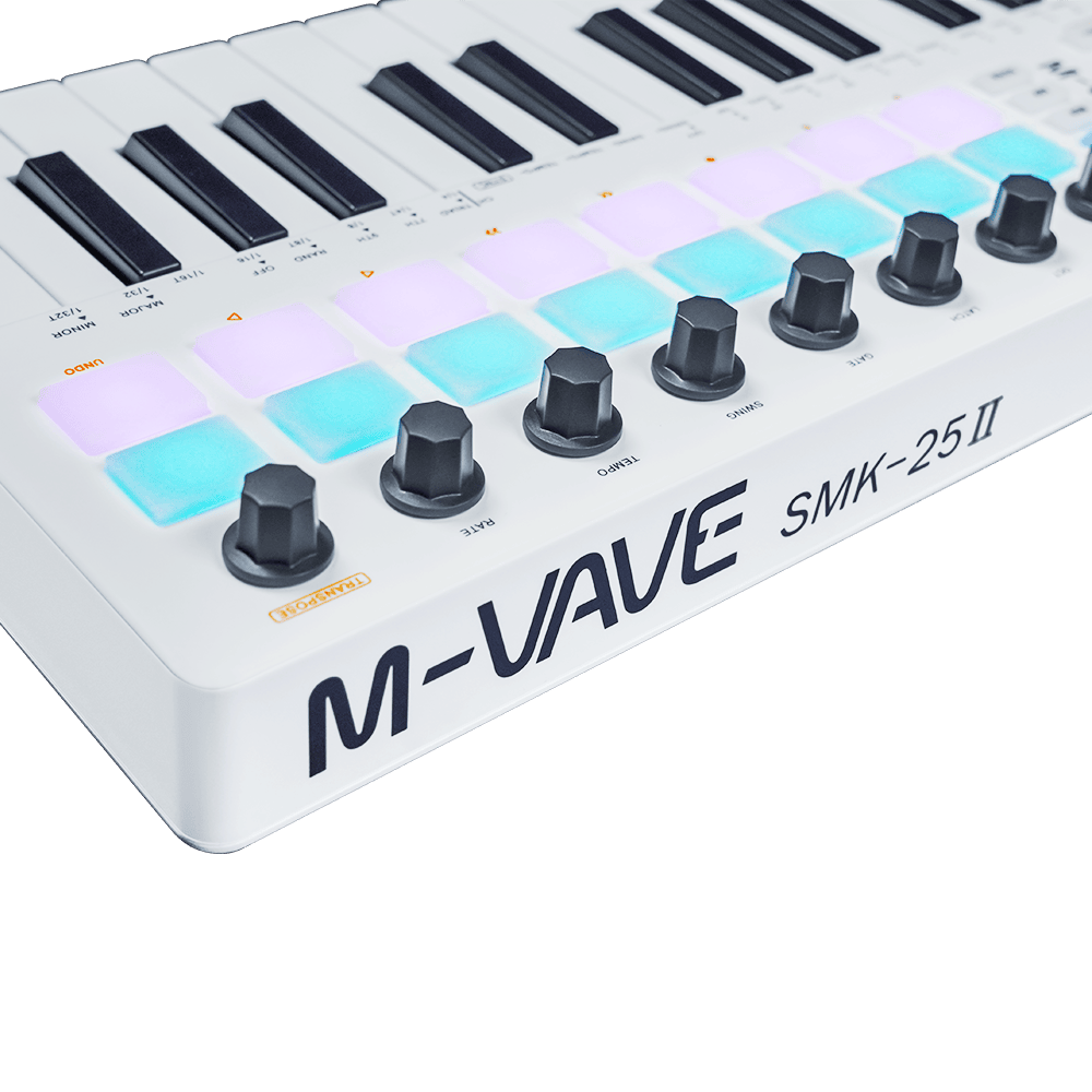 The M-VAVE SMK25-II MIDI Keyboard Controller is a compact 25-key portable MIDI keyboard with velocity-sensitive keys, wireless connectivity, and USB MIDI support — perfect for music production, performance, and creative workflow.