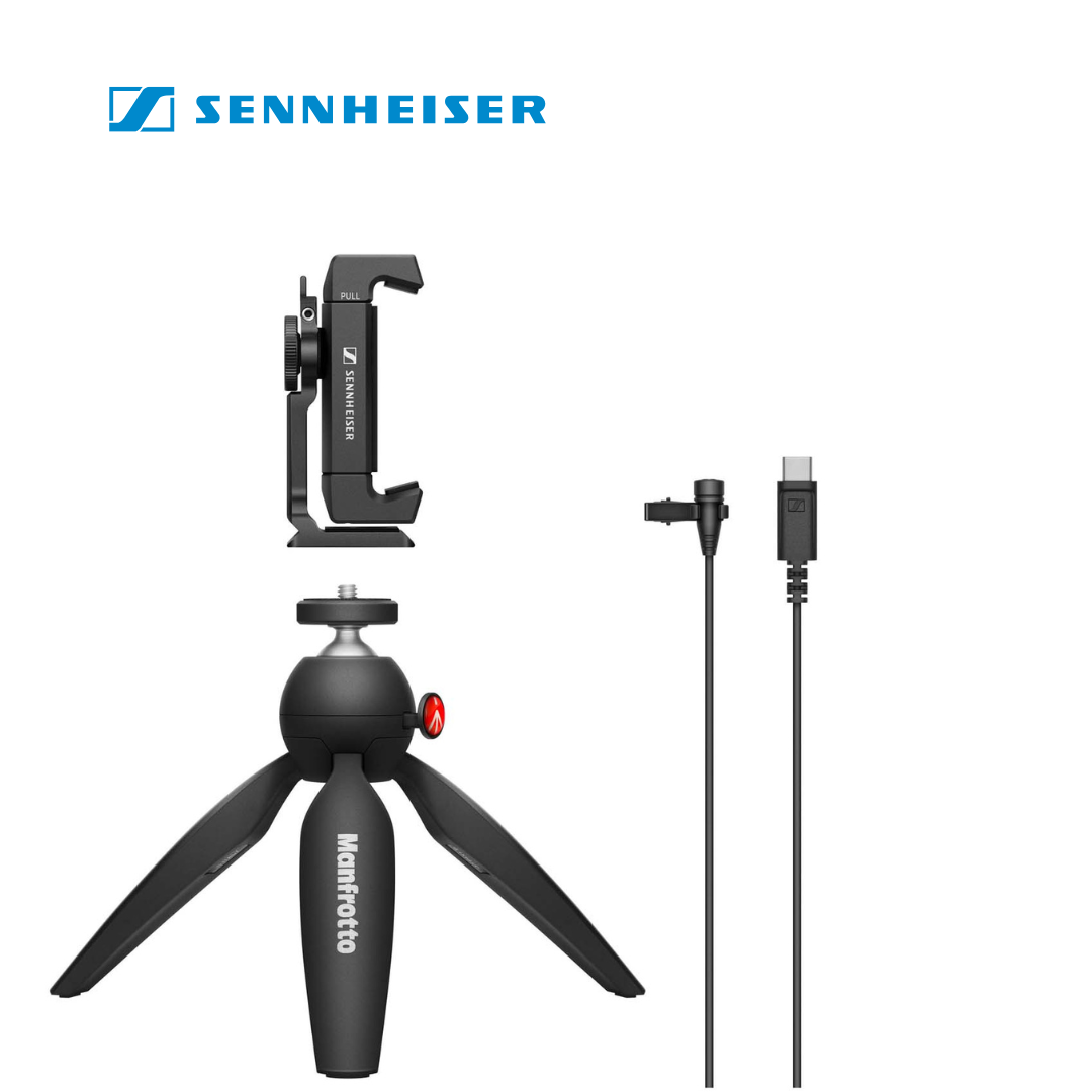 - Also available: XS Lav USB-C Mobile Kit (includes Manfrotto PIXI Mini Tripod and Sennheiser Smartphone Clamp)